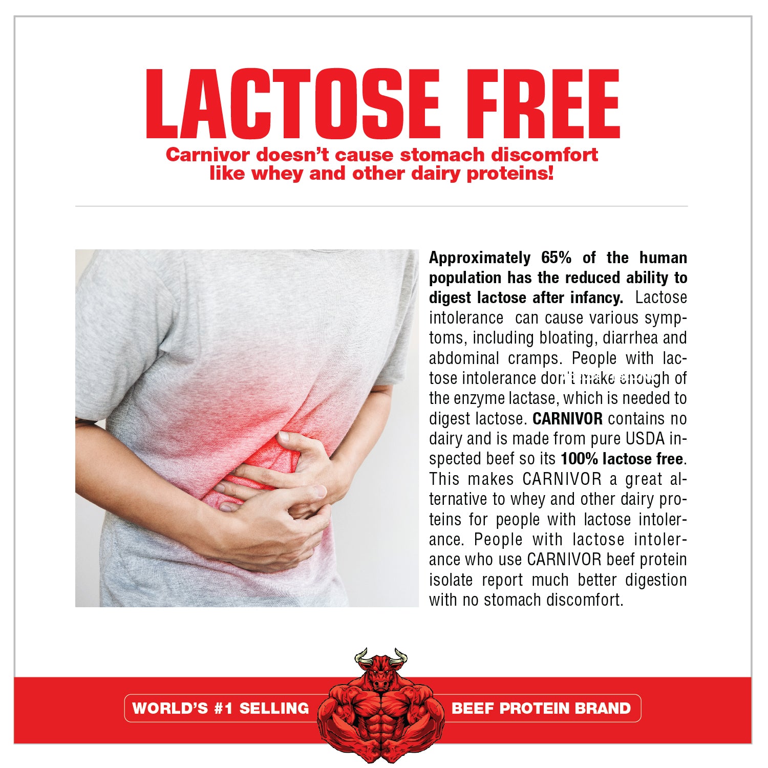 SENZA LATTOSIO – SENZA ZUCCHERO – SENZA GRASSI Contenendo zero grassi, zuccheri o lattosio, Carnivor è molto più facile per l'intestino. L'isolato proteico di manzo Carnivor fornisce l'alternativa definitiva al siero di latte facile per l'intestino. L'isolato proteico di manzo Carnivor fornisce l'alternativa definitiva al siero di latte, senza che lo stomaco trasformi lattosio o latticini. Con Carnivor BPI puoi anche ottenere tutti gli amminoacidi e le proteine per la costruzione muscolare di una bistecca senza grassi o colesterolo. BRUCI PIÙ CALORIE... BRUCI PIÙ GRASSO CORPOREO