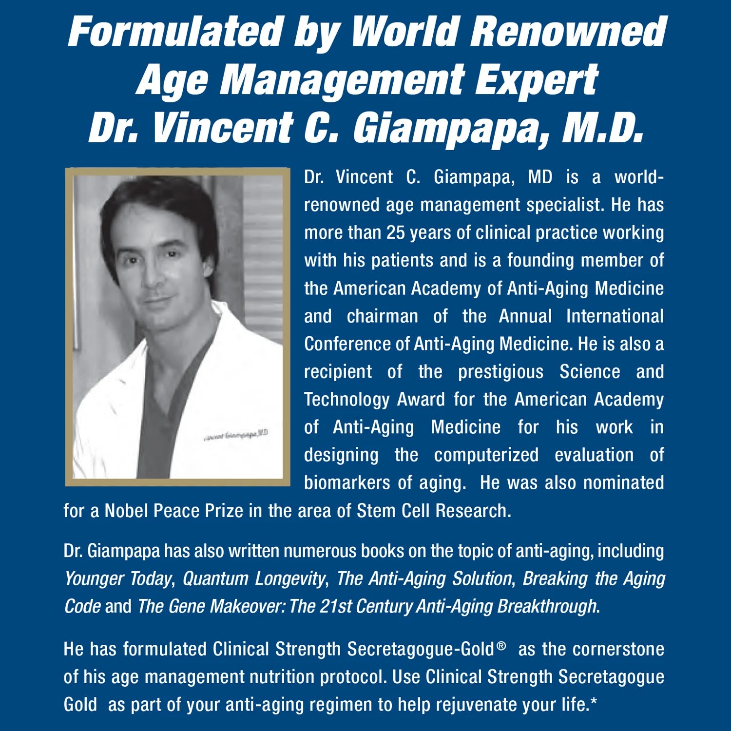 Secretagogue Gold è stato formulato clinicamente dal Dr. Vincent Giampapa, un esperto di fama mondiale